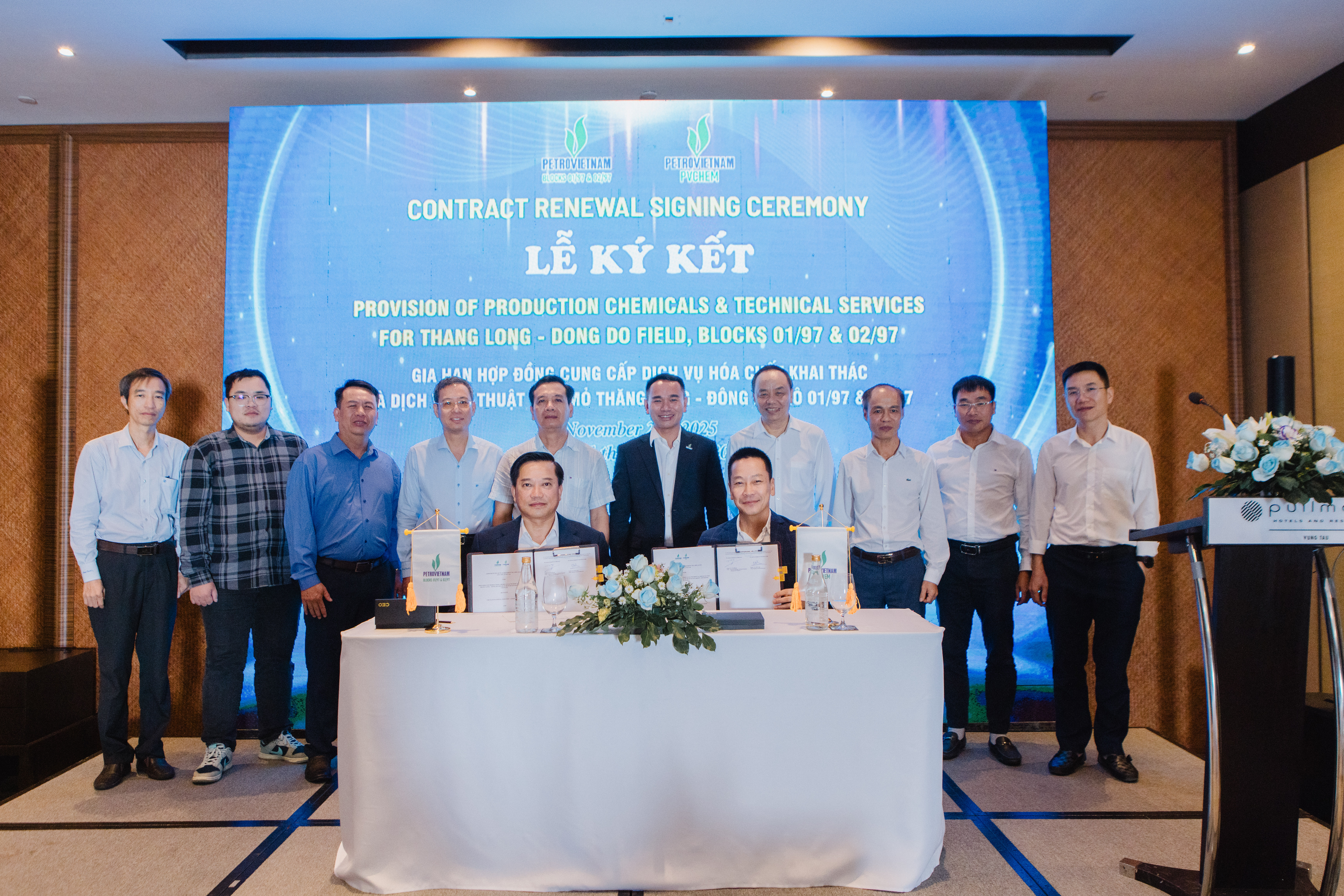 Lễ ký kết gia hạn hợp đồng cung cấp Dịch vụ Hóa chất khai thác và hỗ trợ kỹ thuật cho mỏ Thăng Long – Đông Đô giữa PVChem và Ban điều hành Lô 01/97&02/97
